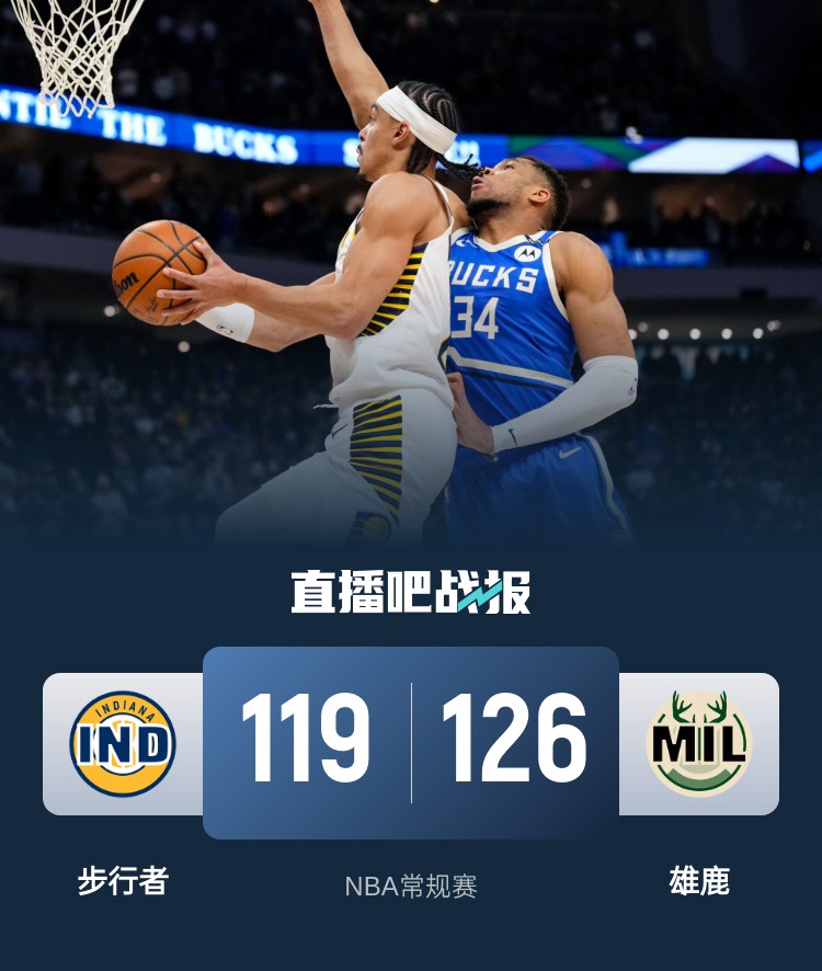 字母哥34分10板毕业 哈利伯顿24+15 雄鹿击退步行者赢卡位战