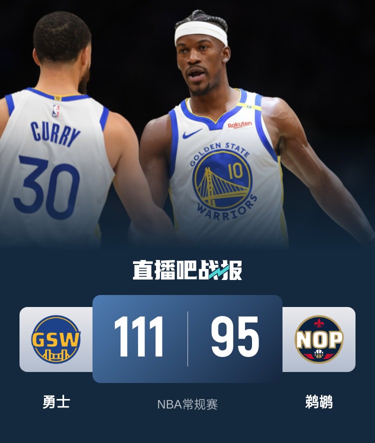 库里复出23+6 巴特勒18+10 追梦6+6+6犯 勇士力克残阵鹈鹕