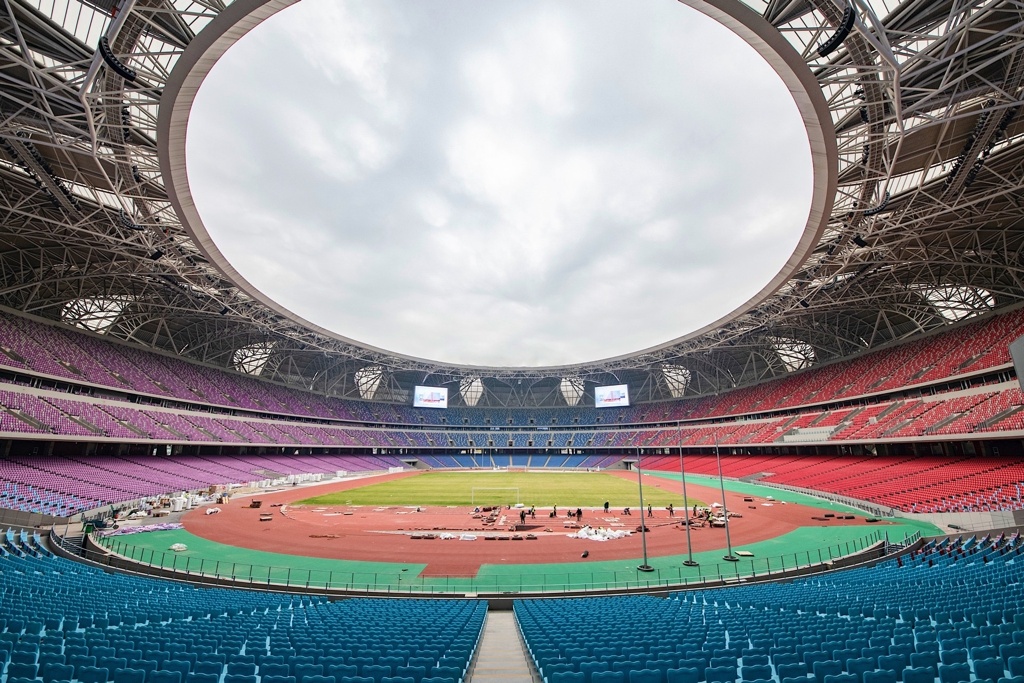 杭州奥体中心体育馆是杭州第19届亚运会的开闭幕式场地,拥有80800个固定座席,是国内座位数仅次于国家体育场(鸟巢)的大型体育场馆。本场赛事售票数达到6.7万多张,这场比赛将创造中国足球赛事上座人数的新纪录。此前中国足球上座人数最多的比赛是2012年江苏舜天1-1战平广州恒大的比赛,南京奥体中心涌入了65769名观众。