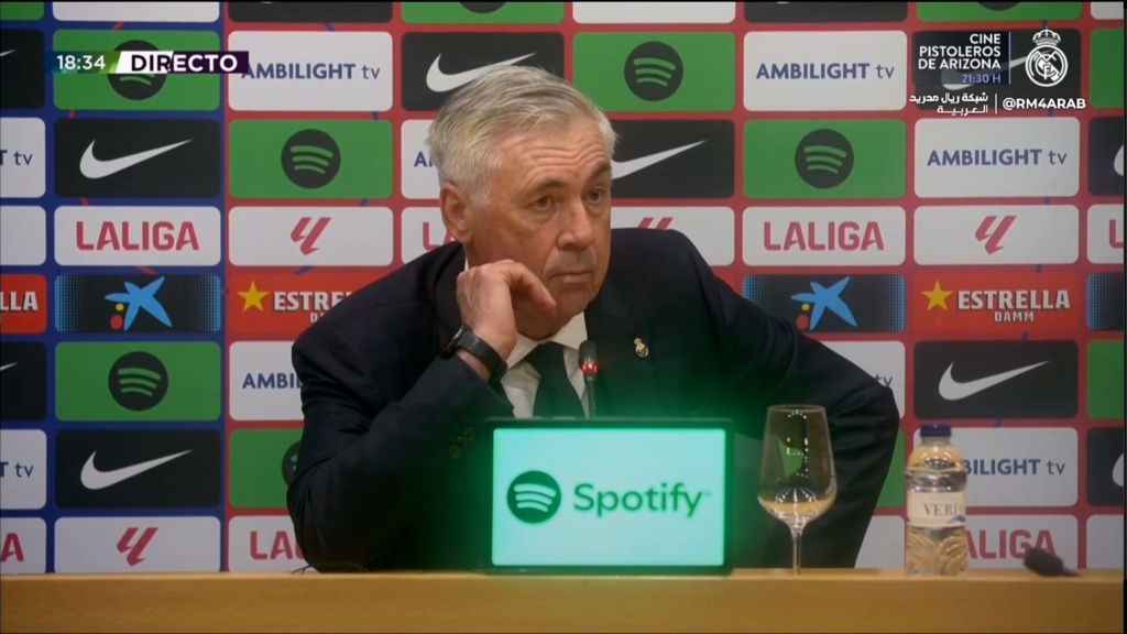安切洛蒂:“我们有两次机会扳平4-4。这是一场势均力敌、充满竞争、拼搏到最后一秒的比赛。我们进了一个球,但被判越位,我也是这么看的。面对一支伟大的球队,两个伟大的队伍,我的球队在态度和投入上无可指摘。结果不理想,但我们全力以赴地竞争了。”