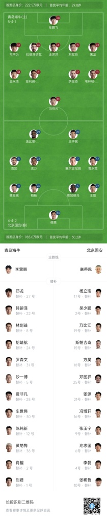 05月17日讯 北京时间19:35,青岛海牛vs北京国安。赛前,双方公布首发。