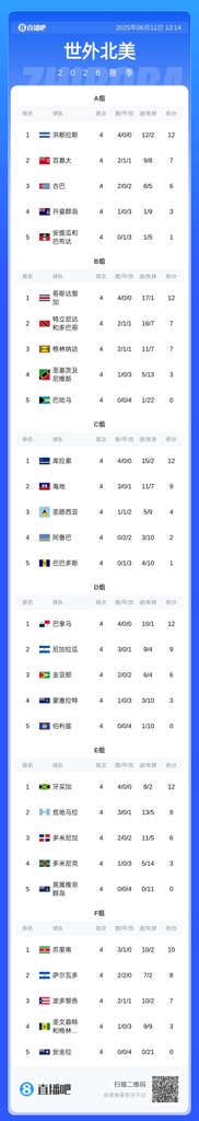 06月12日讯 随着2026世界杯预选赛中北美区第二轮赛事落幕,中北美足联今日正式公布最终轮(第三轮)关键信息,包括参赛球队名单、抽签分档规则及程序。最终轮抽签仪式定于北京时间6月13日早7时举行,球迷可通过中北美足联官方油管频道观看电视转播。